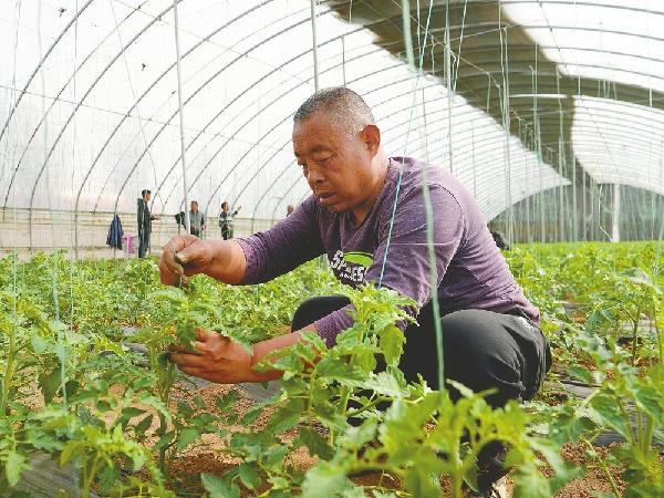 连日来,市高新区祝村镇东大树村大棚种植户抢抓农时,开展大棚西红柿幼苗管护工作。 本报记者 韩文洲 通讯员 赵菠摄
