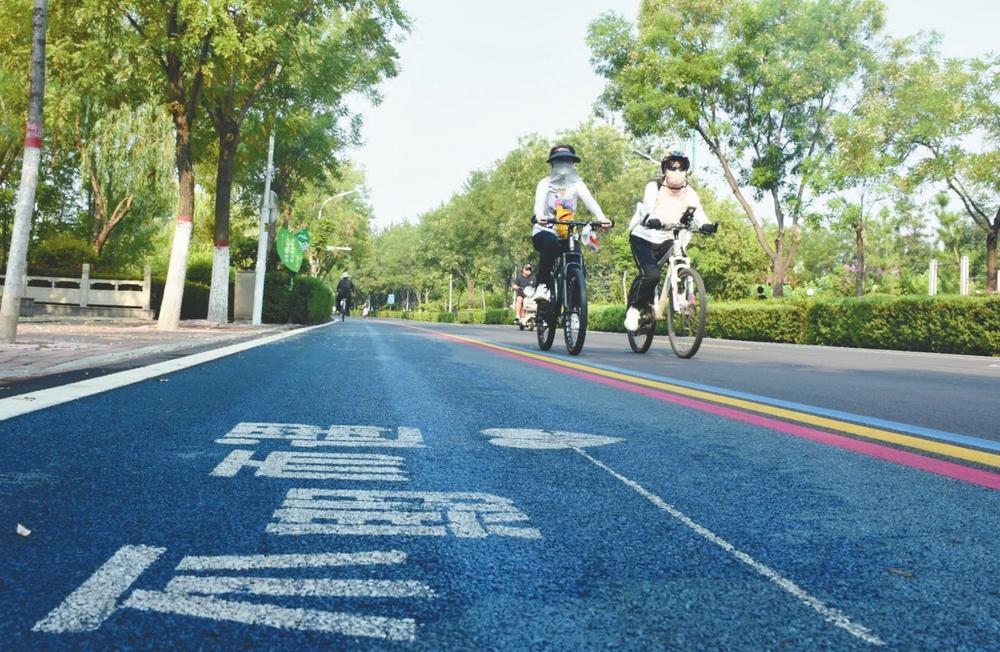 骑行爱好者在七里河北岸健身绿道骑行。 黄涛摄