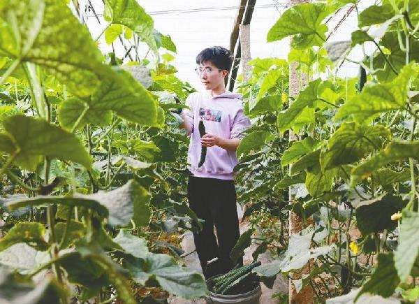 近日,广宗县北塘疃村村民在果蔬大棚采摘黄瓜。 近年来,广宗县大力发展特色农业,促进农民增收。截至目前,全县果蔬种植面积4.8万余亩,年产值3.8亿元。 本报记者 张驰通讯员 梁智晓摄