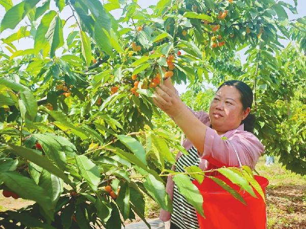 5月12日,临城县黑城镇胶泥沟村的樱桃园里,饱满诱人的果实挂满枝头,吸引众多游客前来体验采摘乐趣。该村因地制宜探索出“党建 产业 旅游”融合发展模式,让更多村民走上致富路。 本报记者赵沙沙 通讯员 陈宁摄