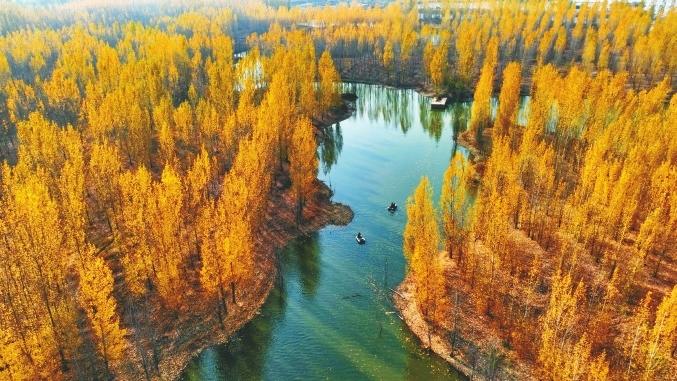 初冬时节,在邢台市隆尧县亦城村泜河沿岸,杨树等树木树叶呈金黄色,与水面、河岸相映衬,勾勒出一幅美丽和谐的自然画卷。2018年以来,隆尧县不断推进泜河生态涵养工程,以“防洪、生态、文化、宜居”为功能定位,打造河畅、水清、景美的良好生态环境,促进城乡人居环境的改善。(新华社记者牟宇邢台新闻传媒中心记者陈雷摄)