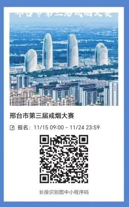 “戒烟不仅是为了获奖,更是为了自己和家人的健康。”大赛组委会相关负责人表示,希望通过这次活动,帮助更多人成功戒烟,拥抱健康生活。目前,戒烟志愿者招募工作正在有序进行,感兴趣者可通过邢台市卫生健康委员会官方微信公众号关注大赛启动信息了解详情,或者用手机微信扫描下方二维码报名参与。