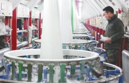 工人在新河经济开发区一家塑料包装纺织企业生产车间工作。