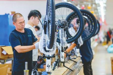 近年来,广宗县强化龙头企业带动,加快布局建设高端自行车赛车产业“园中园”,创新推广“共享智造”模式,推动产业集聚集约发展,持续壮大自行车产业集群。本报记者张驰通讯员 梁智晓摄