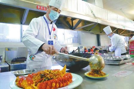 11月21日,“铁牛杯”邢台焖饼争霸赛巨鹿预选赛在该县和平喜宴艺术中心火热开赛,30余名烹饪焖饼高手同台竞技。排名前四的选手将代表巨鹿县参加全市总决赛。图为巨鹿预选赛现场,参赛选手在烹饪焖饼。 韩文洲、石莹莹摄