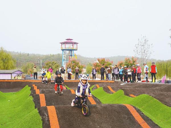 10月24日,“骑遇苹果季·丰收伴我行”2025松盛农业抱香谷骑行活动,在信都区抱香谷骑行小镇宏途自行车运动基地举行。自行车泵道、5公里山地越野赛道、公路自行车赛道等专业赛道吸引了我市及周边骑行爱好者500余人参加。图为10月25日,小朋友们在体验泵道骑行。