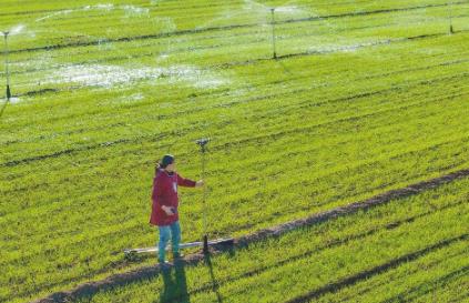 近日,内丘县小马村农民抢抓晴好天气,安装喷灌设施、浇灌小麦,全力做好小麦越冬准备。