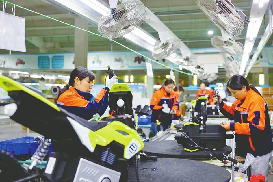 近日,工人在广宗县贝多奇儿童玩具有限公司车间生产线上组装电动儿童玩具车。近年来,广宗县围绕自身特色,精心打造自行车产业链条,大力发展健康休闲、智能时尚产品,助推自行车产业向中高端迈进,推动经济增长。(记者 张驰 通讯员 梁智晓 摄)